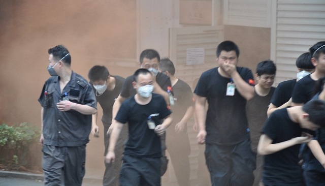 下午1410分,消防演練正式開始,火災警報鈴聲拉響,煙霧彈迷繞到整個廠區,全體員工通過消防通道按照指定的疏散線路,有序地進行緊急疏散,用濕毛巾或濕布捂著口鼻,彎腰降低身姿,從安全通道跑出,并第一時間撤離到行政綜合大樓正面廣場前的安全區域,所有人員均在規定時間內完成了撤離。一旦發生火災,最重要的是要平穩心態,不慌不燥,掌握正確的方式有序從安全通達疏散。