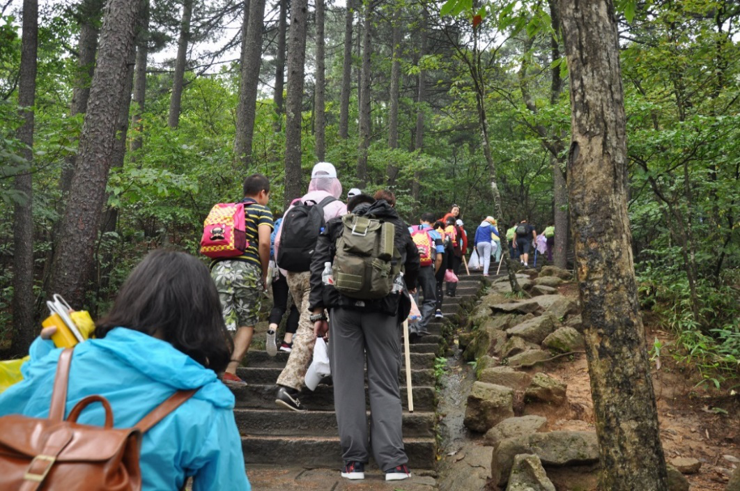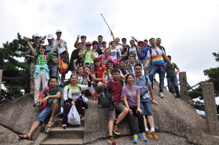這天的天氣是再適合爬山不過了,大家早早準備好了大背包小背包的食物和水,個個壯志雄心、意氣風發、精神抖擻,朝著黃山之巔奮力前進。攀登開始了,因為開始的激情一下就走到了半山腰,但大約1小時后便開始有同事邁不動腳步了,肩上背的背包原來這么重,都不知道自己帶了些什么,恨不得現在一口氣把背包里所有食物都吃進肚子里來減輕肩上重任。體力好的同事主動幫助身體瘦弱的女同事提拿包裹行李,互相鼓勵,互相攙扶,靠團結的力量一步步前行。