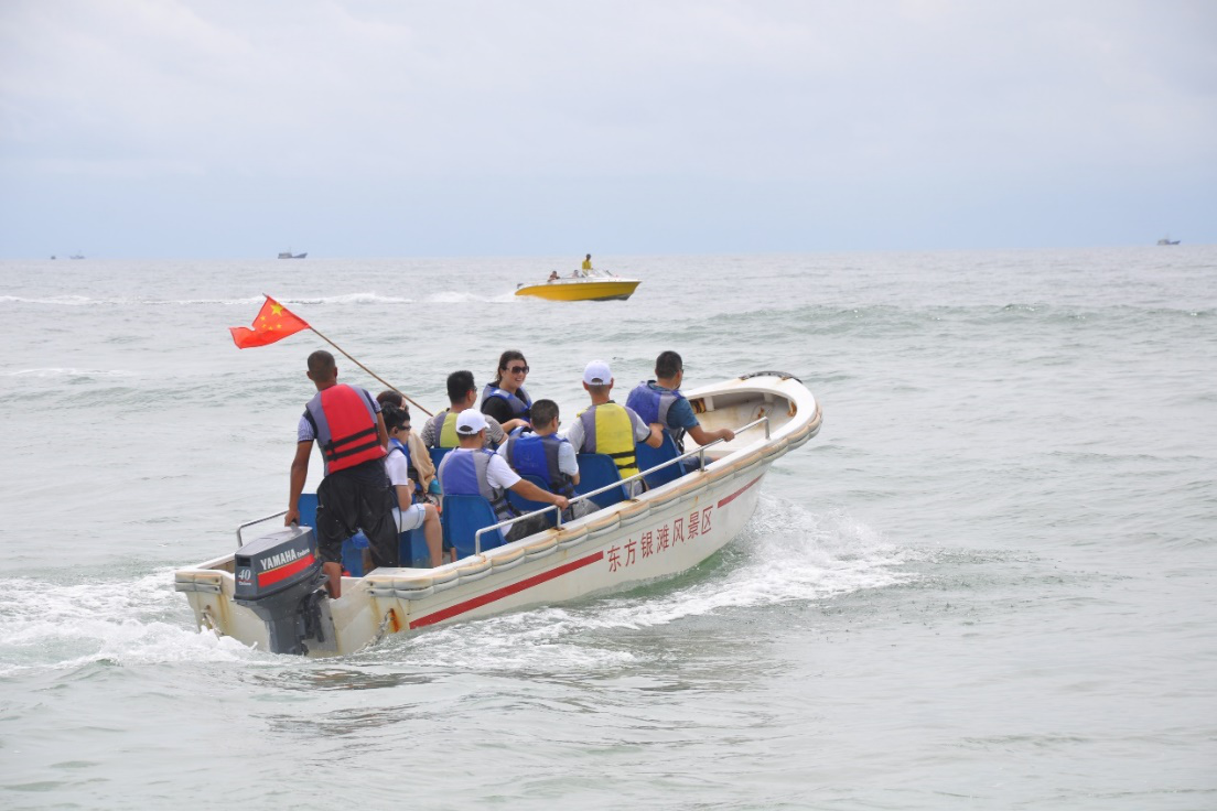 我們坐上了快艇正準備開往大海,享受在寬闊的大海中乘風破浪,走到大海的深處去感受那一望無際的寬廣胸襟。看看我們是不是和酷,要準備出海遠洋航行了,期待我們收獲滿滿的回來!